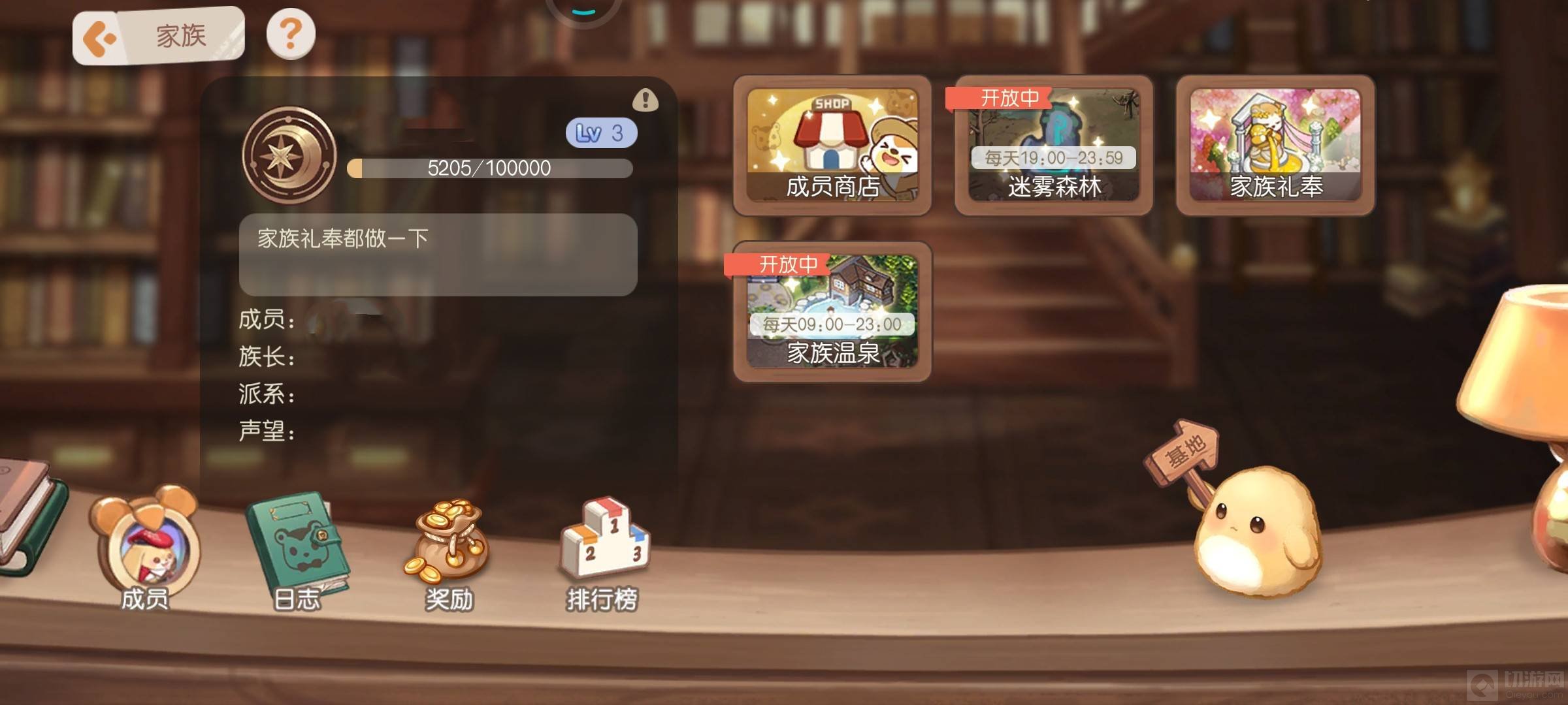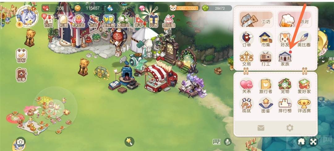 1、迷雾森林商店是在家族的,首先点击右上角的书本。