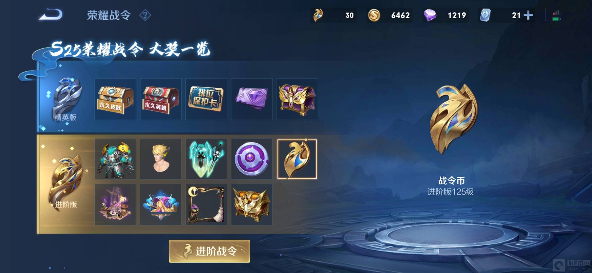 2、一般的精英版一个赛季可能很难筹到990荣耀币,这时候买个进阶版就很容易得到990荣耀币。