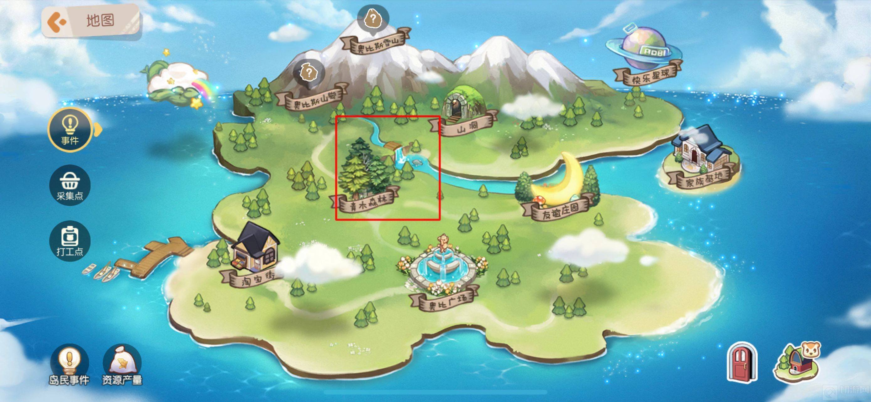 1、先进入奥比岛,点击右边的地图。