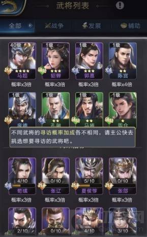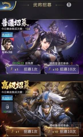 2、关羽的获得直接可以进行招募,也就是抽武将,不过要注意的是关羽只会在下面进行出现。