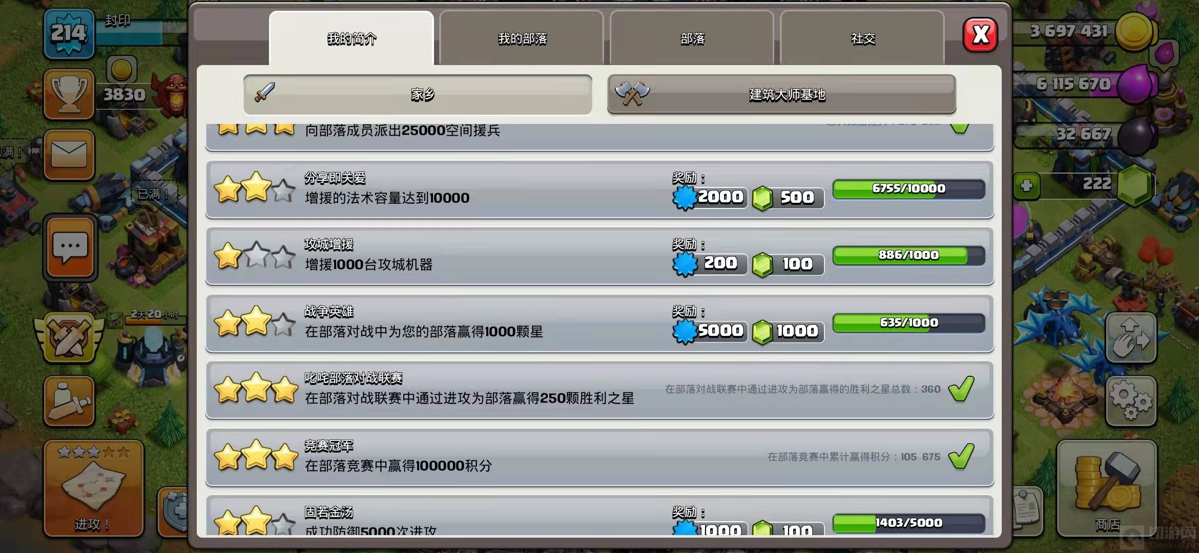 1、达成不同的成就可以获得大量的宝石。