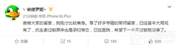 谢谢大家的留言,我刚才比较焦急。看了好多专精的军师留言,已经基本大局观有了,抗生素过敏原来也是孕妇常态,已在医院,希望下一个不过敏就没事了。