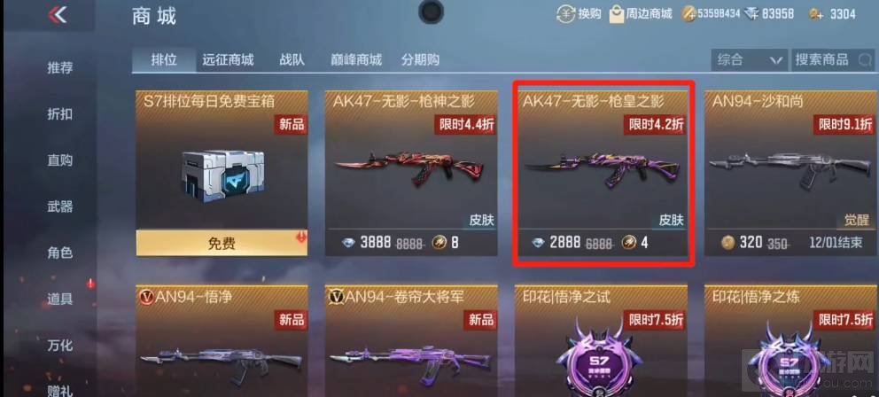 枪皇之影皮肤在排位商城可以购买,花费2888钻石和四个传奇币。每个赛季排位达到枪圣段位就会获得两枚传奇币,也就是说,要获得枪皇之影永久皮肤,至少要两个赛季。