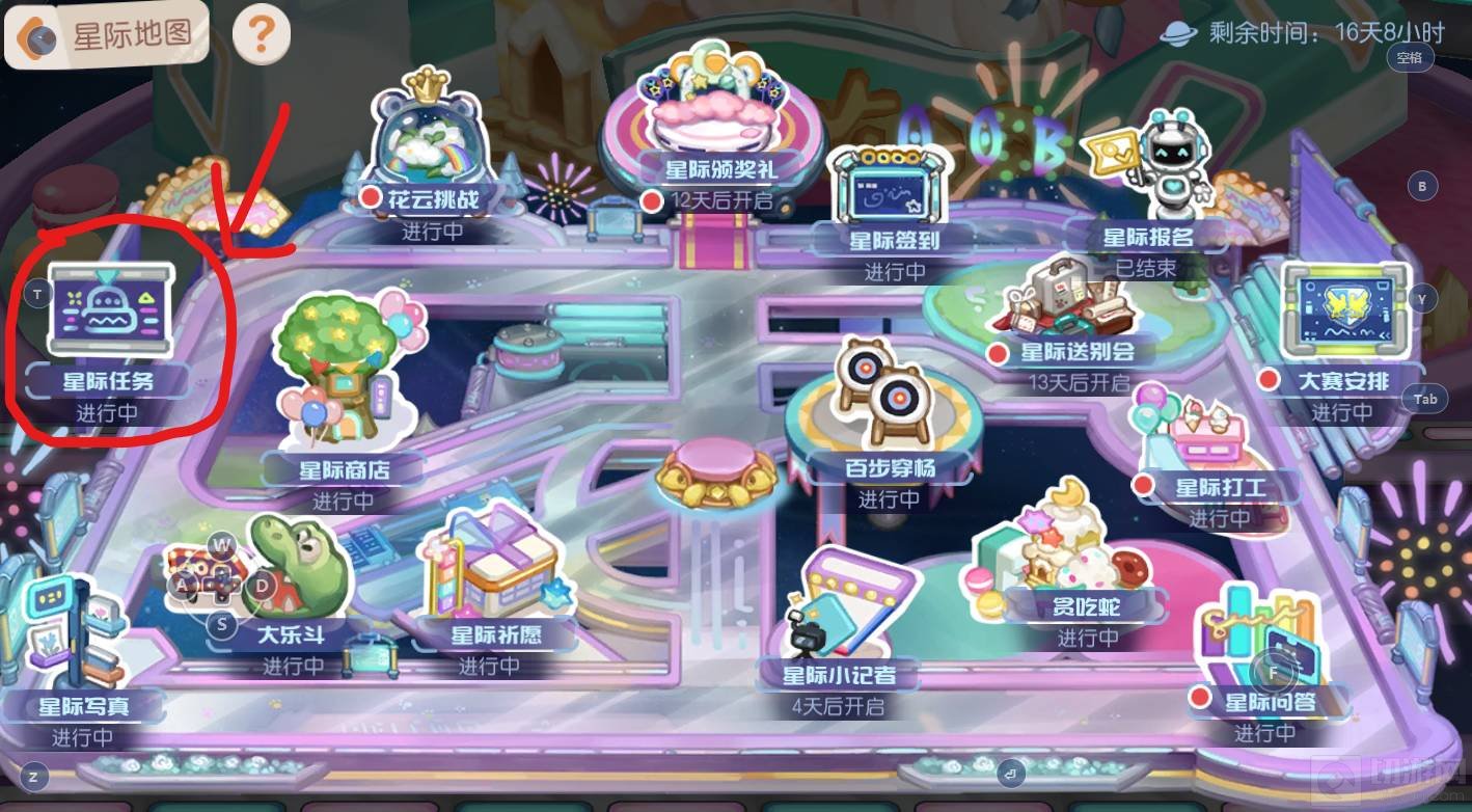 打开星际赛之后,在星际地图里找到星际任务,点击打开。