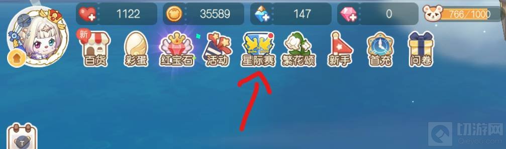 打开游戏,在游戏页面上方找到星际赛,并点击打开。