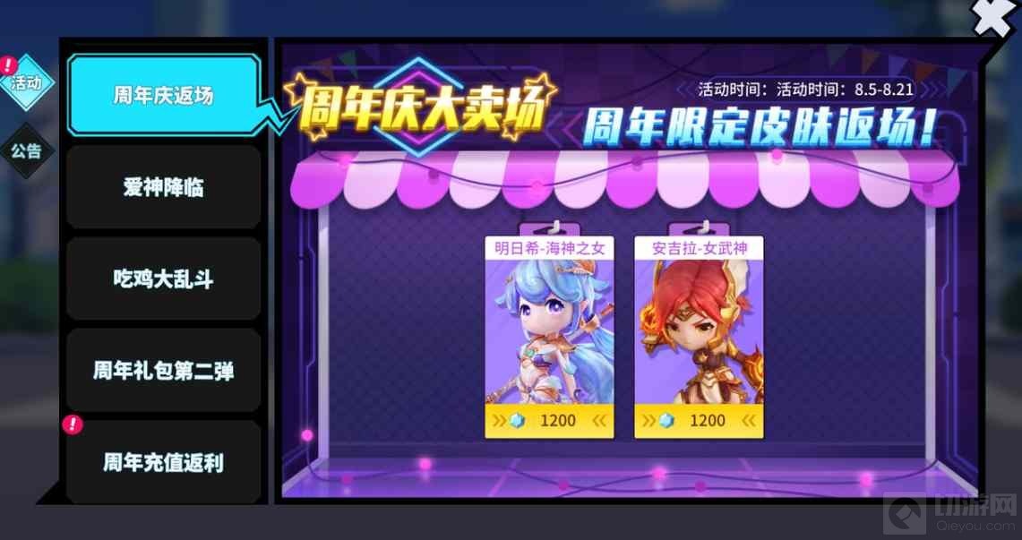 俗话说,人靠衣装马靠鞍,生日自然缺不了承接新美好愿望的新衣!本次周年庆活动依然有此前周年庆专属皮肤【海神之女】和【女武神】的加入。错过了第一次的机会吗?现在你可以将它们全部收入囊中。更可在商城中解锁周年限定占星师皮肤【爱神维纳斯】和限定武器皮肤【丘比特之弓】,可爱的莉莉【小公主】也来到了奇葩大陆做客,让我们欢迎她的到来!