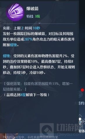 解析:这是一个跟踪技能,但是还是别想用他来pvp了,洛朗本身伤害并不高,主要还是用来叠加侵蚀buff的。