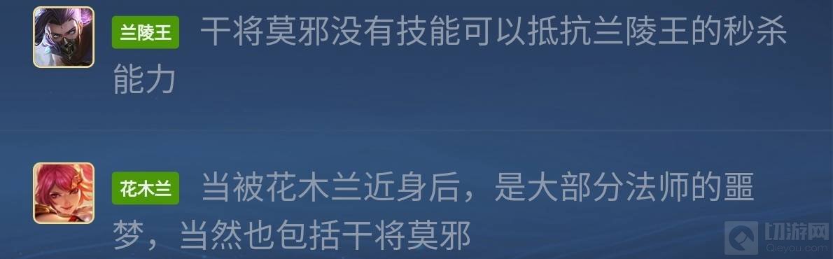干将被兰陵王,花木兰克制,容易被一套技能带走。