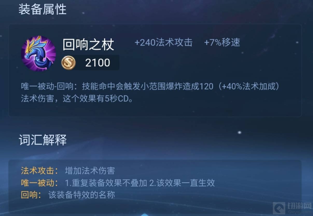 2.回响之杖,法术强度加成高,附带技能爆炸效果,并且移速加成也很有帮助。