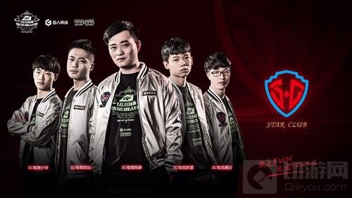(从左至右选手依次为:sc电竞少爷、sc电竞阿灿、sc电竞阿森、sc电竞新酒、sc电竞黑白)