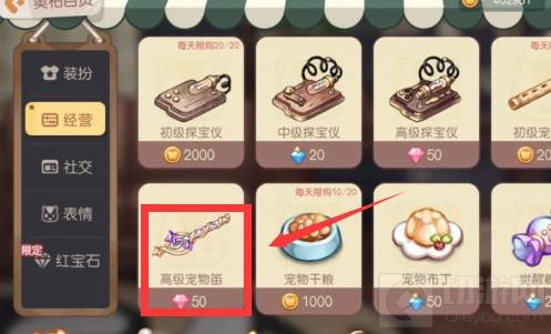 2、蓝焰冰狐需要玩家在商店中使用50粉钻来购买高级笛才能抓到五星宠物蓝焰冰狐。