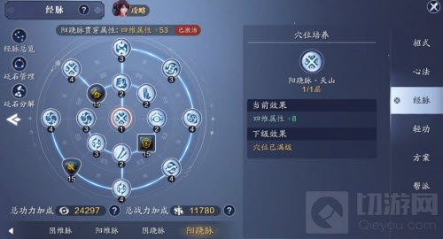 4、经脉提升:120级普升提升77点功力。另外开放8个棱石14升到15级,一个砭石升级需要16.5W经验需要1.65组绿色石母,8个棱石加上普升共需13.5组绿色石母,提升632点功力。经脉部分一共可以提供24297点功力。