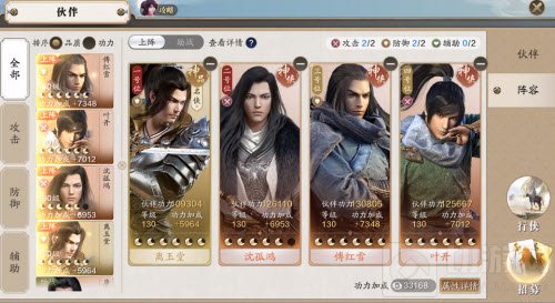 6、伙伴提升:120级4个神侠+5个金侠共需要565个蓝色研习录=113本紫色研习录。橙侠出战升级可以提高59~60点左右,金色伙伴升级可以提高49~50点左右,1个助战提高9点,根据伙伴情况下可提升250~290点。