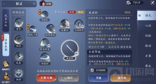 1、武学提升:120级武学等级从59级升至60级可以提供88点功力。