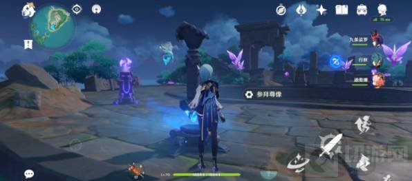 1、秘境外共两个小解密,先参拜尊像,将四个指针调好方向,然后打亮四个雷元素方碑(建议用皇女或者九条)。
