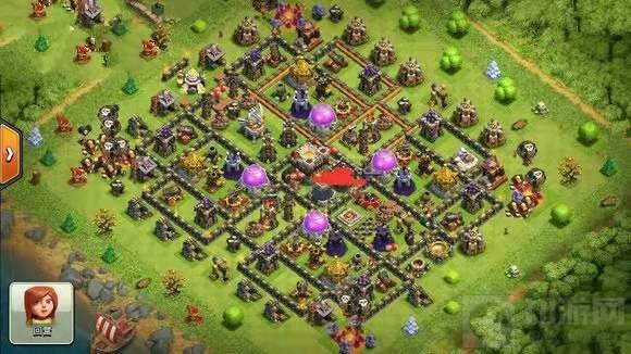 先下天女,下天使之前下个气球探黑炸,同时下龙宝开始清边,让女王走你想让她走的路,等女王吸引火力之后下炸弹,开墙,一定要等女王吸引火力之后下,不然开失败就GG了,待已方掉地方女王援兵之后就可以下野猪了,如果女王能把鸟炮清了就待女王清掉之后下野猪,然后法术自己看着下,注意清边收尾,三星还是很容易的。