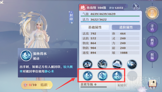 如鱼得水:出手时,如果己方有人被封印,较大概率对被封单位使用静心术;