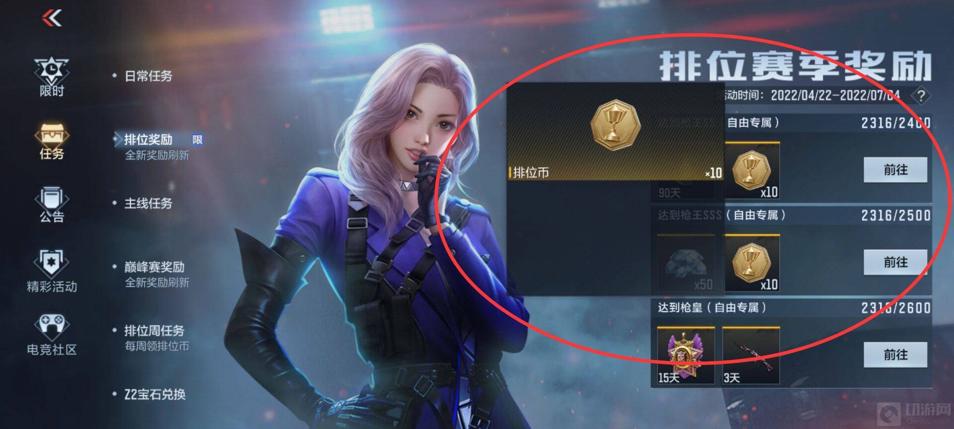 2. 还可以通过每周排位任务完成相应的任务可以获得30个排位币。