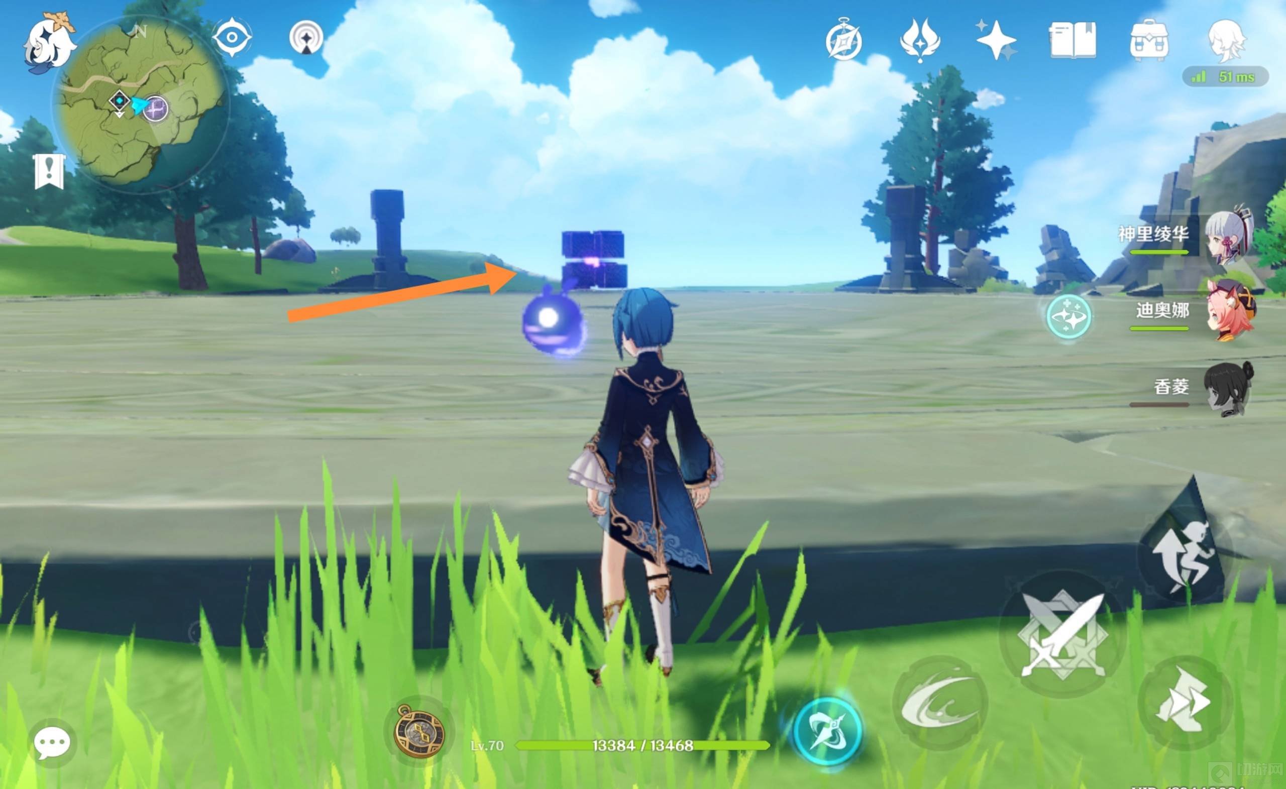 3、到达山顶后面前的紫色方块就是无相之雷了。