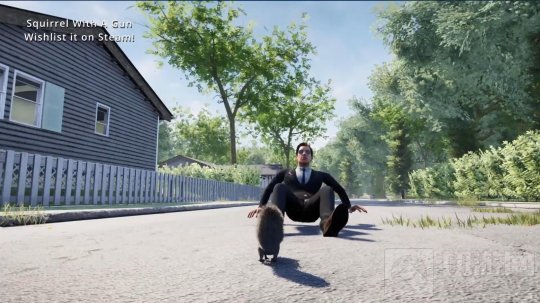 《持枪松鼠》由个人独立游戏开发者Daniel DeEntremont开发,主角就是一个努力操枪的可爱小松鼠,游戏舞台为3D写实空间,玩家扮演可爱松鼠一边努力抓住比自己还大的手枪,躲避或者干掉追加而来的黑衣墨镜特工们,一边探索世界。