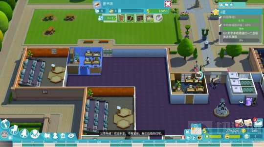 不得不说,游戏的自由度还是很高的,在购买地皮后,房间的大小可以随心所欲地调整,同时因为游戏并没有对白天黑夜、宿舍与洗手间这类生活房间有过多的严谨设定,像是一间宿舍,没有固定的居住成员,基本可以让学生排着队轮流睡觉。像是休息室也不仅仅可以摆放沙发电视,还能打造成街机厅。据说之所以这作能够有这种自由度,是因为在《双点医院》评论中,玩家对自由度的呼声较高,所以开发者们就加入了相关系统。