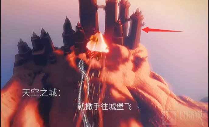 2.飞到差不多的高度就可以看到一座城堡了,就是天空之城,这时两人就可以撒手往城堡飞行了。