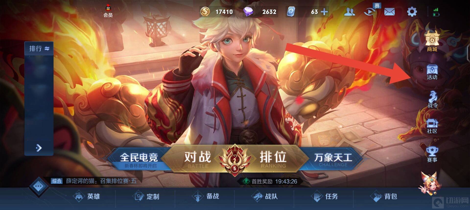 1、先打开王者荣耀,点击活动。