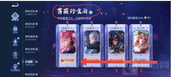 4、之后使用蔷薇之心兑换稀有皮肤,这样便可以获得稀有皮肤,需要注意的是要收集150个蔷薇之心才能兑换。