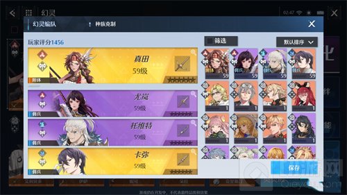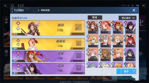 6、推荐阵容二:真田、薇莉安、乔妮、尤岚,推荐思路:全火元素,最快速叠加火元素debuff造成高额伤害。
