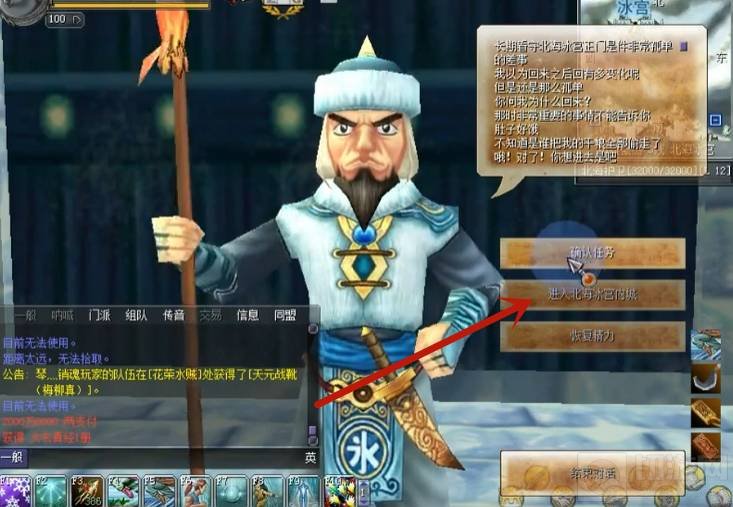 3:在北海冰宫区域触发战斗,要先使用“火焰斩”技能攻击敌人,造成大量伤害。