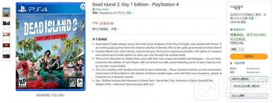 根据推主Wario64的发现,亚马逊已经上线了PS4、PS5和Xbox Series X版本的《死亡岛2》预购,均售价69.99美元,列表显示的发售日期为2023年2月3日。