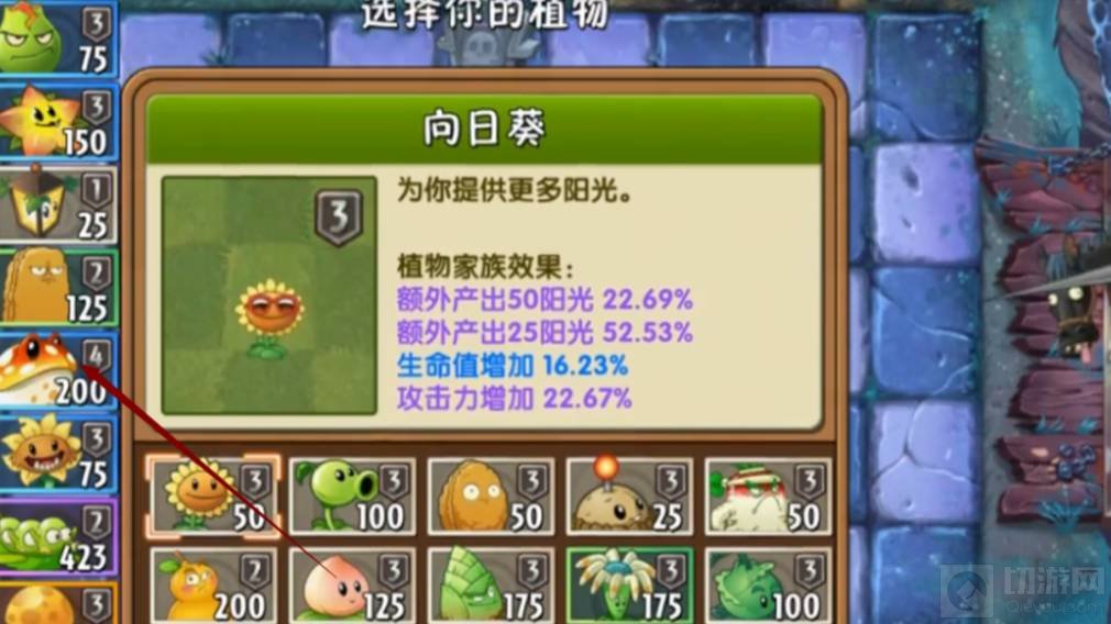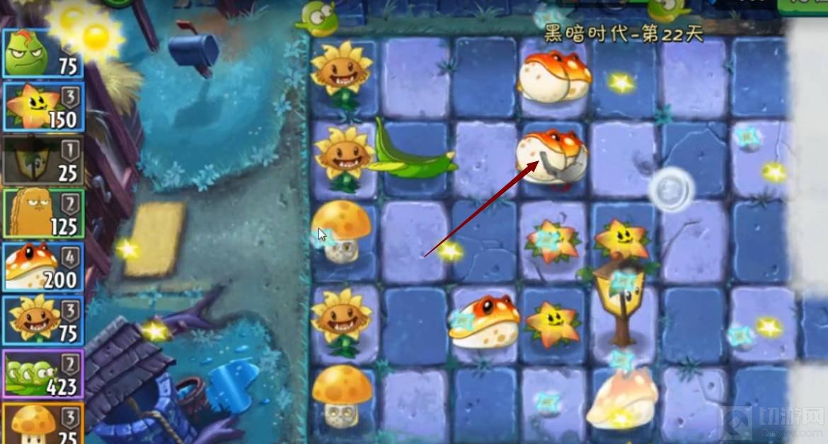 1、在游戏开始前选择使用的植物时选择好金蟾菇,再点击开始战斗,金蟾菇可以吞下整个僵尸。