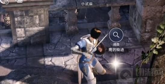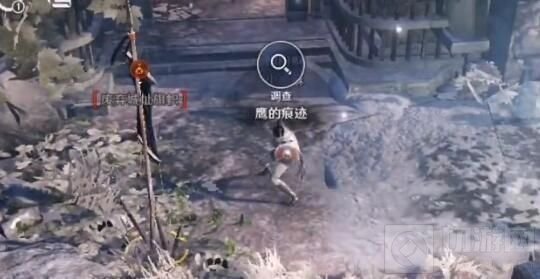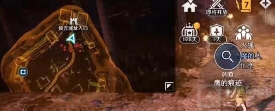 3、第三处:在废弃城址入口位置,靠近城墙的区域就能找到。(当我们找完三处鹰痕迹以后,来到入口处,一直往里走。在地图"U"型处挺住,往森林里走。找到一株横在地上的大树,与上面的老鹰互动,就能获得宠物鹰了。)