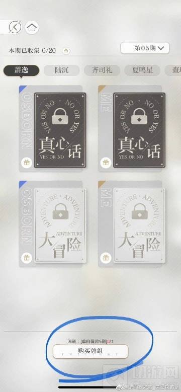 3、已经错过之前面卡组新玩家,同样可以在往期以每组1500星旅币购买一组,每期真心话有4组卡牌,每一期总计需要6000星旅币。p4