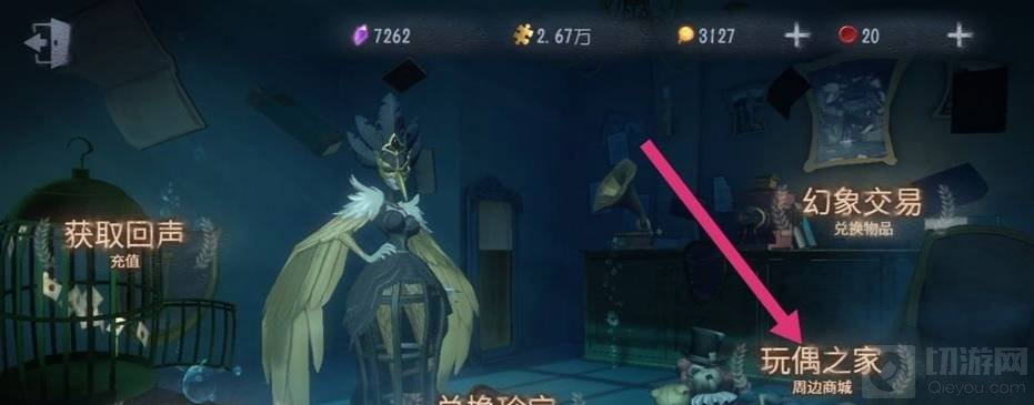 进入第五人格游戏主界面后,点击幻象大厅,在幻象大厅页面右下角就是玩偶之家。可以在玩偶之家购买游戏角色的毛绒公仔。