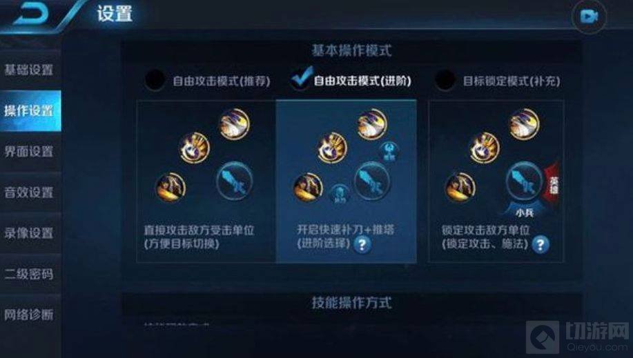 推荐:自由攻击模式(进阶),也就是补刀、推塔键建议使用补刀推塔键。
