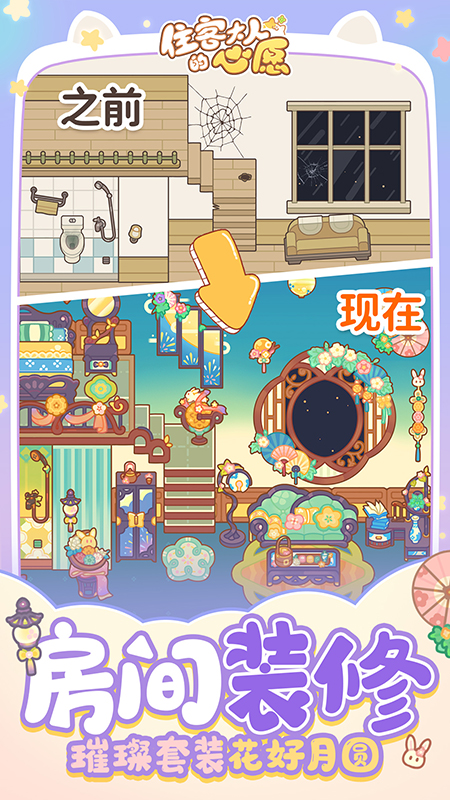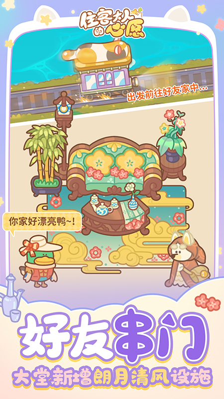 《住客大人的心愿》是一款融合多元素的公寓模拟经营手游,玩家化身公寓老板,和小猫咪店员们一起经营公寓,服务一群挑剔的住客,满足他们的心愿。