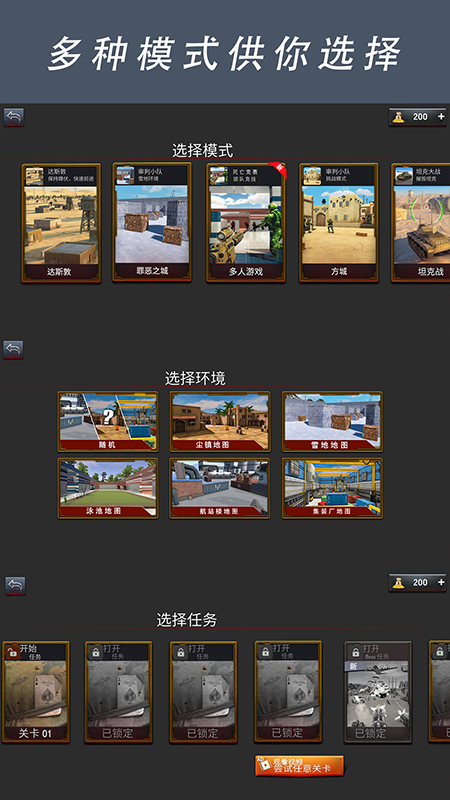 游戏为您准备了众多艰难的任务。如果您能凭借出色的战术和先进的武器完成这些目标,那您将成为游戏中的传奇战士。每完成一个级别,您都将迈向更高的荣耀。不断战斗,获取更多资源,解锁更强大的武器,坚持到最后,成为真正的战斗王者。在与敌人拼杀的过程中,时刻留意自身的状态,及时获取补给,保持好战斗状态。在规定时间内击败敌人,掌控整个战场。