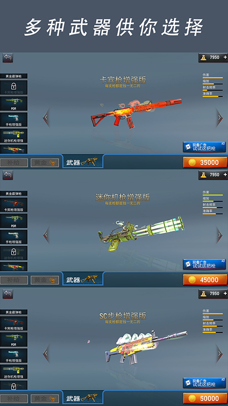 ❖ 种类繁多的高性能枪支