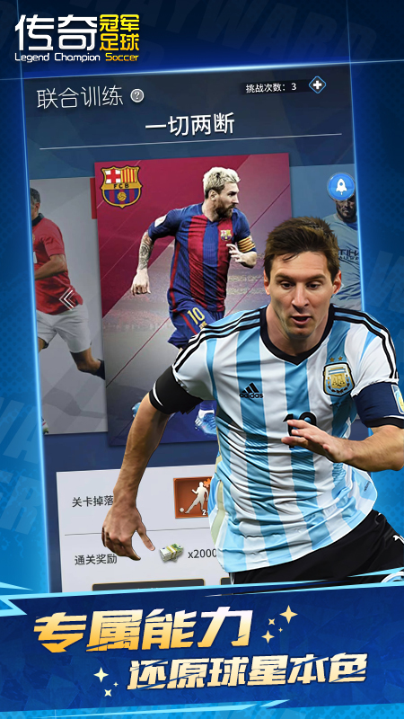 曾经我也有个球员梦,直到我的膝盖中了一箭,在《传奇冠军足球》里你不用再为实现不了儿时梦想郁郁寡欢,也不用再因为中国足球而感到无能为力,你将创建属于你,属于中国的最强球员,和你的伙伴一起,走上世界之巅。