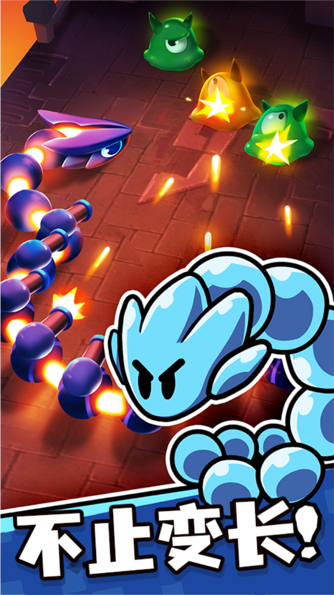 《贪吃蛇无尽大作战》是一款融合了Roguelike战斗和局外养成的割草射击游戏,轻松休闲玩法搭配各种创新元素,游戏内共有200多种小怪、50多种Boss、45种不同流派的宠物、70多种局内技能随心搭配,蛇灵系统、圣物系统、宠物系统、装备系统、天赋系统、组合技任你选择!