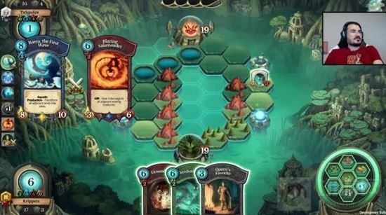 这个系统也能让你选择一些在游戏后期才能用出来的Treasure cards,嗯你的对手在同一时间也会抽到。大体上来说,这些卡的作用类似大型AoE、大解或者别的返场手段。这一点很重要,因为这样一来潘多拉系统中的每一组Faeria套牌都随时有可能翻盘。这在炉石里面基本是不可能的。如果你要想翻盘的话你只能玩法师或者潜行者。潜行者有着强力的前期清场手段,法师有烈焰风暴。现在你可以玩任何一个职业,盼望着每回合按费拍怪,但是你没有同样的机会了。