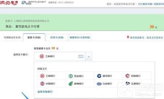 随后可以选择充值方式,可以用点卡,也可以在线支付。这里以在线支付为例,如图所示