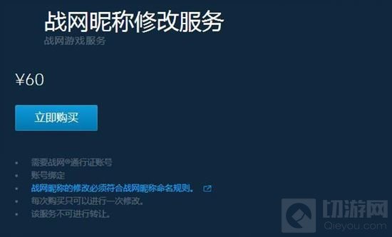 战网昵称修改服务现在推出付费版本了,价格60元,玩家可以无限制进行修改,两次修改之间也无需再等待。原先可以通过战网积分进行改名兑换依然存在和有效,看来玩家们改名字的需求这么大啊。