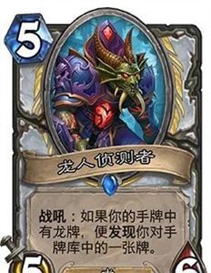 龙人侦测者:5费5/6,战吼手牌中有龙则发现一个对手牌库里的牌。很强,不亏节奏的过牌,但尴尬的是,他也不赚节奏。牧师战场了之后不怕没牌,但是怎么站住场这才是重中之重。所以这牌只是优势锦上添花,并不能雪中送炭。