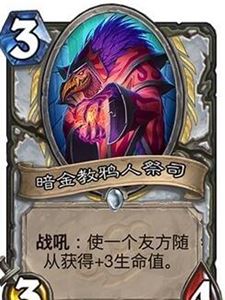 暗金教鸦人祭司:3费3/4,战吼使一个友军随从+3生命值。对于传统牧师来说,334白板。牧师2费又没什么强力战场怪,这个怪有屁用。在竞技场中基本等于一个3费不亏身材的贴膜BOY,很强。在节奏龙牧中可以把224嘲讽变成嘲讽大王八,看起来还不错。如果新版本牧师有强力的2费战场怪,这张牌应该很有潜力进入中速牧的构筑。(友情提示:海地精猎手已经退环境)