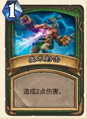 猎人有不少的低费伤害法术,但细数下来,只有奥术射击和快速射击更加适合蓝龙作为斩杀,在大帝减费过后,刚好十费完成三十血的伤害。而且在配合加基森和子弹上膛进行刷牌的时候也有很好的效果。