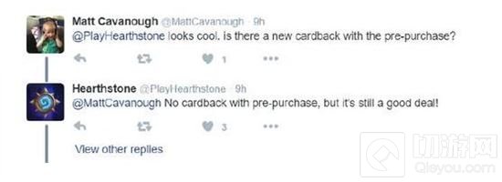对于预购卡背的问题,炉石官推也作出了回答:这次预购么有预购卡背,但这依然是个很不错的交易。(估计因为新版本是加基森,所以炉石官方也变得地精了)