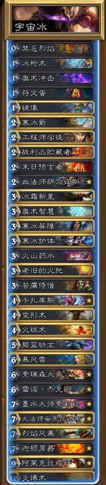 从另一个角度说,为什么不去玩纯冰法而要玩宇宙冰呢?宇宙冰的快攻抗性好,打海盗战和打脸萨是优势,纯冰则比较头疼这两个卡组。