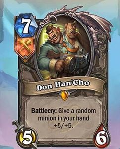 家族牌 756战吼:随机给你手牌中的一个随从+5/+5,还真是简单粗暴的头目呀~
